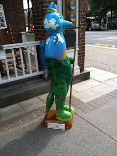 They resupplied and Deva bought new insoles for her shoes and Pace bought new rain pants in anticipation of colder weather in the White Mountains. Dreamer met them at an outfitter and then as they continued to follow the trail through the town, Dreamer went ahead to the Hanover Food Co-op to pick them up. The trail markers are on the telephone poles in Hanover. They resupplied with interesting trail food and by now, boring Cliff Bars, a staple on the trail. They were thrilled the bars were on sale!